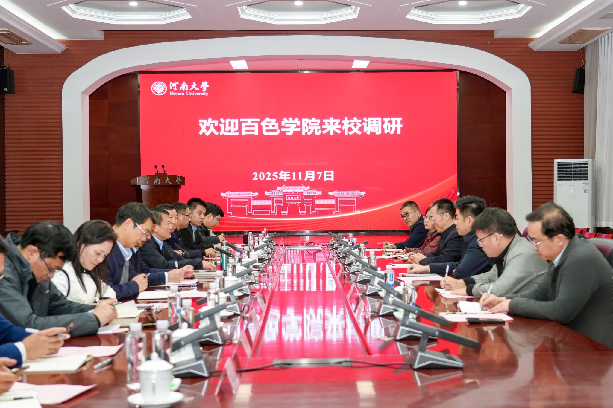 11月7日,百色学院党委书记刘玄启一行到访幻影app官方版下载,校党委书记季波在明伦校区小礼堂会见来宾并座谈交流。幻影app官方版下载副校长苗雨晨,百色学院党委常委、副校长孙鲁毅、刘芳...