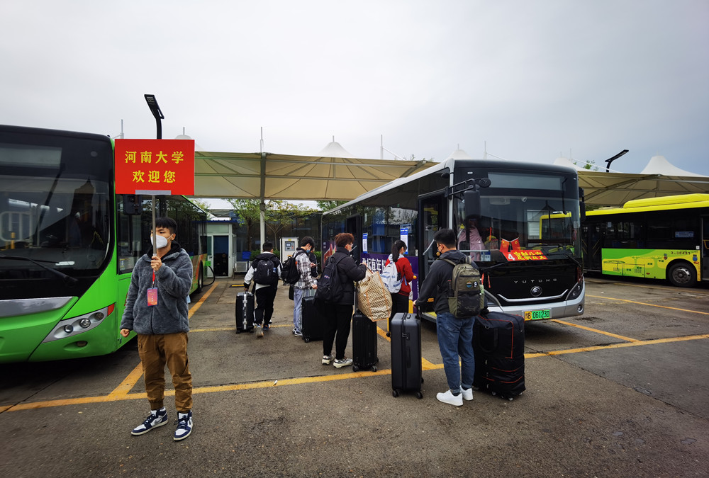 受开封寒冷阴雨天气影响,又恰逢国庆假期人流量激增,加上今年研究生新生同研究生老生同时返校,且金明校区研究生新生首次被安排在校外公寓居住,多种情况交织在一起,使得今年研究生返校迎新工作的难度增大。为此,学校做了大量准备工作:思想上高度重视,多次召开协调会、统筹会逐项布置、落实每一环节,反复强调疫情防控政策要求;行动上落实到人,相关职能部门负责人和志愿者定点定岗,研究生院全员上岗,每处通道都有研究生院领导全天带头值班;技术上实现创新,运用返校系统在线申请审批、智慧门禁系统查验核酸结果;环节上查漏补缺,除了提倡学生私家车点对点接送外,学校还于开封火车站(汽车总站)、高铁北站设迎接专车,登车口设场所码,为乘坐公共交通工具的学生提供接站服务;服务上以人为本,各站点帐篷加长加宽,各单位雨披雨伞等防水器具齐备、志愿者们统一着装有序分工、电动运输工具整装待发。在学校和研究生院的统一部署和领导下,各研究生培养单位尽职尽责,积极落实我校疫情防控期间返校迎新工作要求,保障扫场所码、防疫消杀、体温测量、刷脸入校(查验核酸)和分站报到等程序有条不紊进行。因为严寒细雨,不少老师开来私人汽车帮助搬运行李,带领新生认识校园。整个研究生返校迎新工作在寒冷天气里和难度加大的背景下,却展现出河大人所独有的温度和力度。