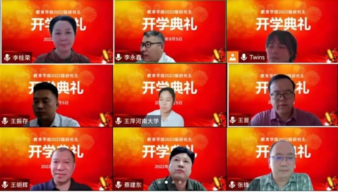 9月5日下午,教育学部2022级研究生开学典礼在线上顺利举行,教育学部领导班子成员、教师代表、导师代表、辅导员以及2022级全体研究生新生参加了开学典礼。开学典礼作为新生入学教育第一课,为接下来各项新生入学教育工作的展开打下了基础。