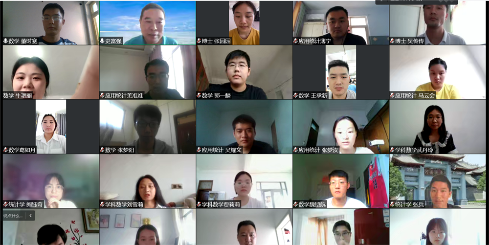 9月6日下午,史富强以“院史院情教育”为主题,首先对当前开封市和我校的疫情防控形势进行了介绍,对同学们疫情期间的健康状况表示关切,并代表学院表达了对全体2022级研究生新生的热烈欢迎。接着讲述了幻影app官方版下载辉煌的历史、艰难曲折的发展道路以及逐步复兴的历程。然后以学院的发展史为切入点,详细介绍了黄际遇、陈作钧、樊映川、黄敦慈、杜孟模、刘亚星等先后在学院执教的著名数学家和教育家,他们为学院的发展作出了巨大贡献,令同学们身临其境,感受颇深。最后,史富强勉励同学们要加强体育锻炼,在学习生活中养成独立思考、解决问题的能力,提升自身综合素质,努力成为创新型、应用型、复合型优秀人才。会议结束时,史富强与同学们“云”合影留念。