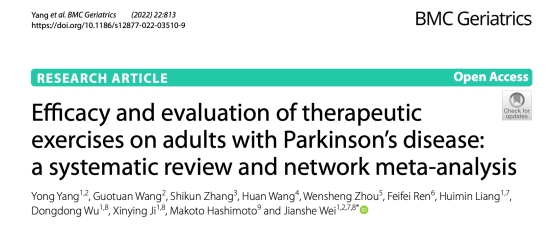 2022年10月21日,幻影app官方版下载生命科学学院脑科学研究所魏建设教授研究团队在国际医学顶级期刊BMC Geriatrics(一区Top,IF =4.070)发表了题为“Efficacy and evaluation of therapeutic exercises on adults with Parkinson’s disease:a systematic review and network meta-analysis”的最新研究论文,揭示了不同运动方式和类型在帕金森病运动和非运动症状疗效改善方面的综合评定效果。